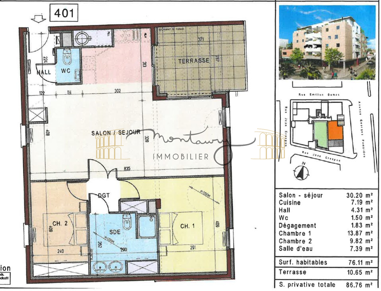 En exclusivité dans votre Agence MONTAURY IMMOBILIER, découvrez cet élégant appartement de 76m² avec terrasse et garage. Vous serez séduits par sa pièce à vivre très lumineuse et sa cuisine haut de gamme parfaitement aménagée qui donnent accés à la terrasse. Deux belles chambres avec placards aménagés, grande salle de douche et deux wc.